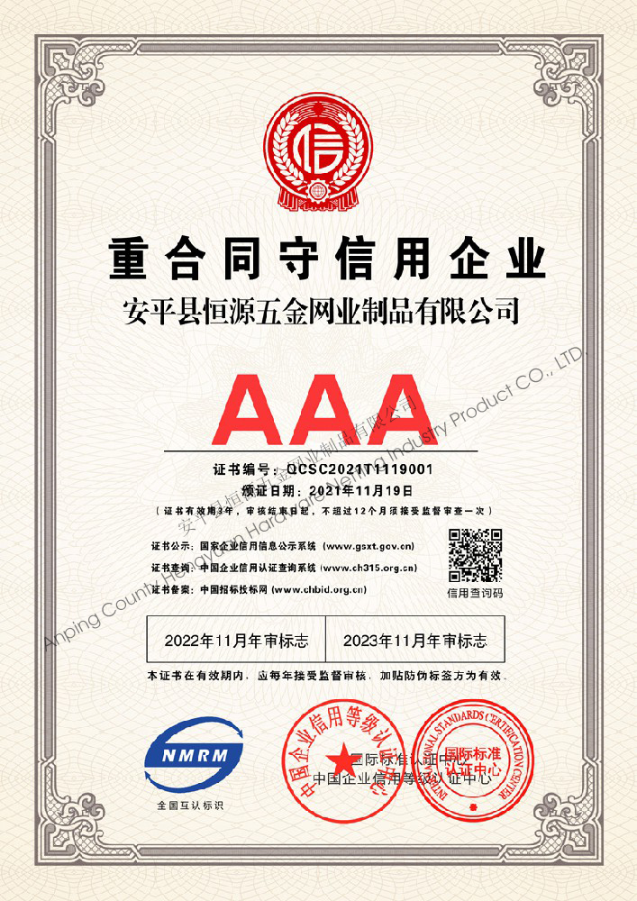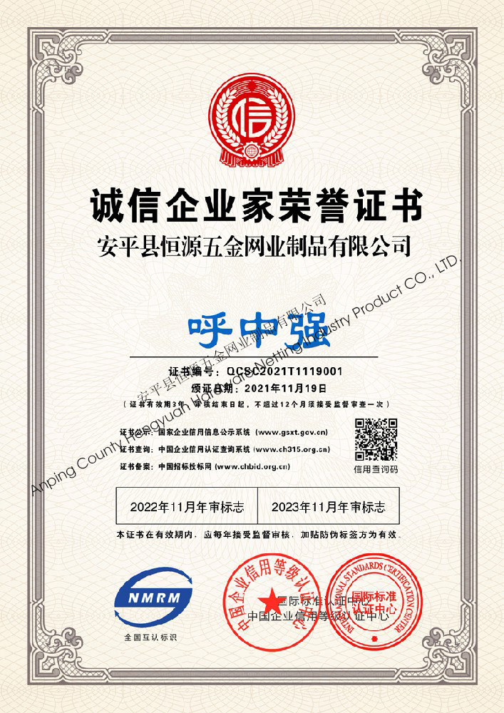 多年來,安平縣恒源五金網業制品有限公司堅持“科技興企、質量立業”的經營理念和“誠心為本、客戶至上”的合作宗旨,優(yōu)化生產工藝,打造優(yōu)質產品,提供完善的服務,受到國內外客戶的一致好評,產品行銷全國各地,并出口美國、德國、韓國、日本、臺灣等國家和地區。
